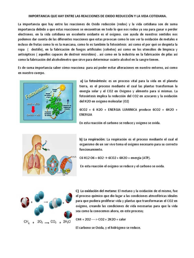 Importancia Que Hay Entre Las Reacciones De Oxido Reduccion Y La Vida Cotidiana Pdf Redox Oxigeno